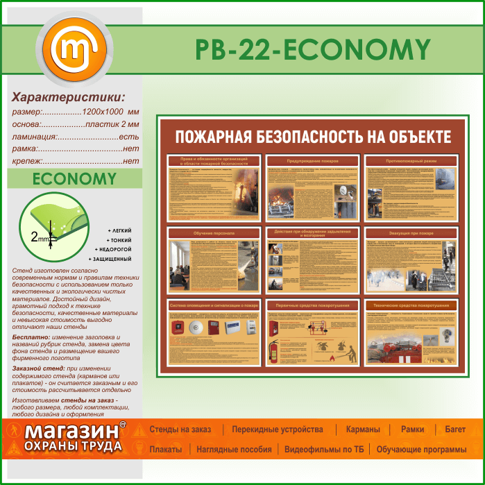 Стенд «Пожарная безопасность на объекте» (PB-22-ECONOMY) в Великом Новгороде купить