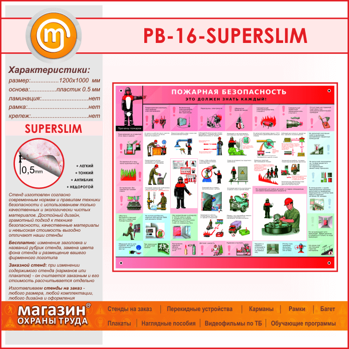 Стенд «Пожарная безопасность. Это должен знать каждый» (PB-16-SUPERSLIM) в Великом Новгороде купить
