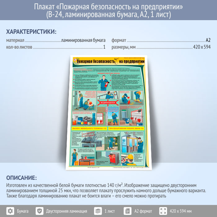 Плакат «Пожарная безопасность на предприятии» (В-24, ламинированная бумага, А2, 1 лист) в Великом Новгороде купить