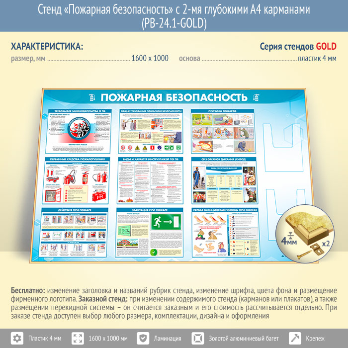 Стенд «Пожарная безопасность» с 2-мя глубокими А4 карманами (PB-24.1-GOLD) в Великом Новгороде купить