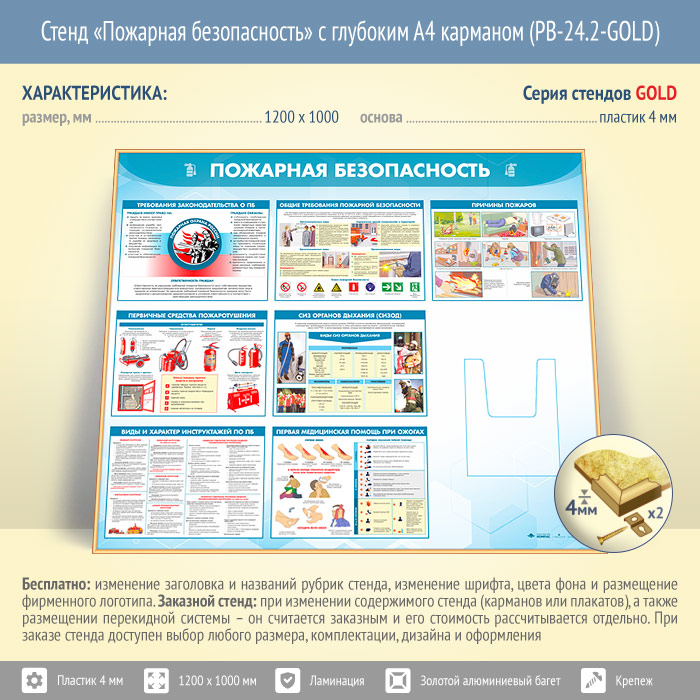 Стенд «Пожарная безопасность» с глубоким А4 карманом (PB-24.2-GOLD) в Великом Новгороде купить