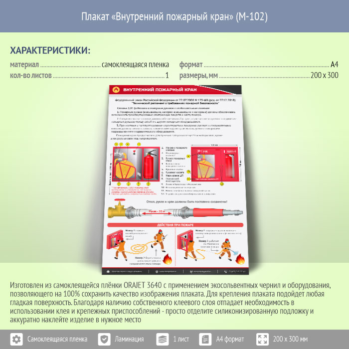 Плакат «Внутренний пожарный кран» (М-103, самоклеящаяся пленка, А4, 1 лист) в Великом Новгороде купить