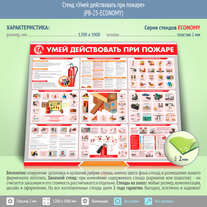 Стенд «Умей действовать при пожаре» (PB-25-ECONOMY) в Великом Новгороде купить