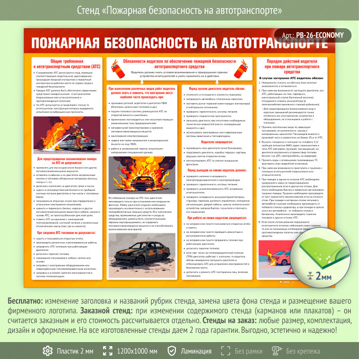 Стенд «Пожарная безопасность на автотранспорте» (PB-26-ECONOMY) в Великом Новгороде купить
