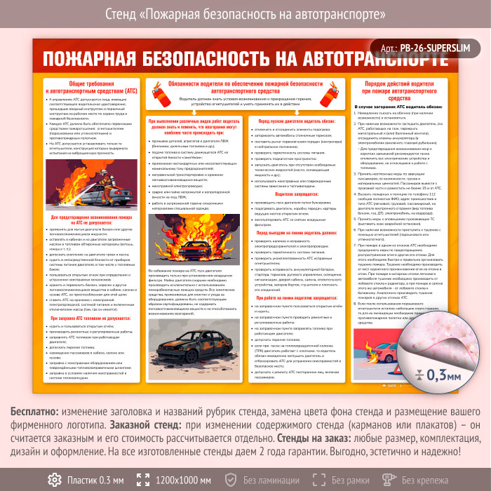 Стенд «Пожарная безопасность на автотранспорте» (PB-26-SUPERSLIM) в Великом Новгороде купить
