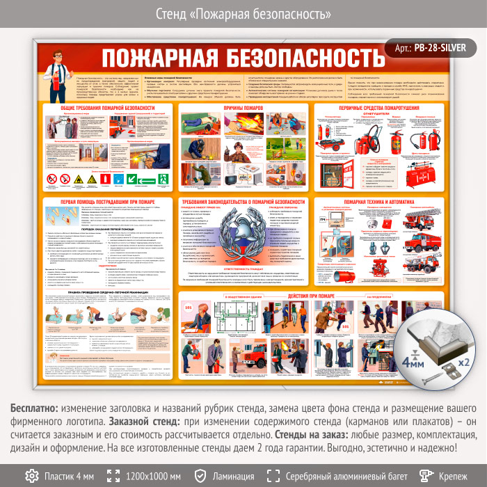Стенд «Пожарная безопасность» (PB-28-SILVER) в Великом Новгороде купить