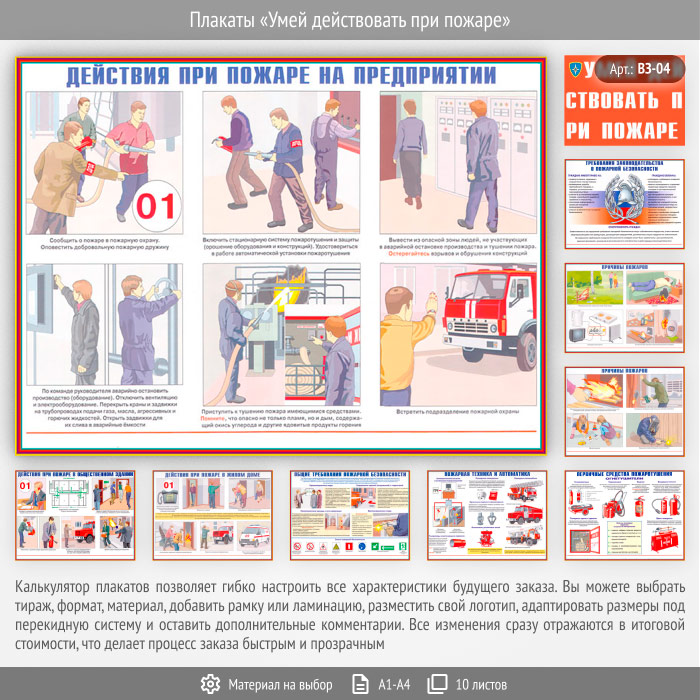 Плакаты «Умей действовать при пожаре» (ВЗ-04, 10 листов) в Великом Новгороде купить
