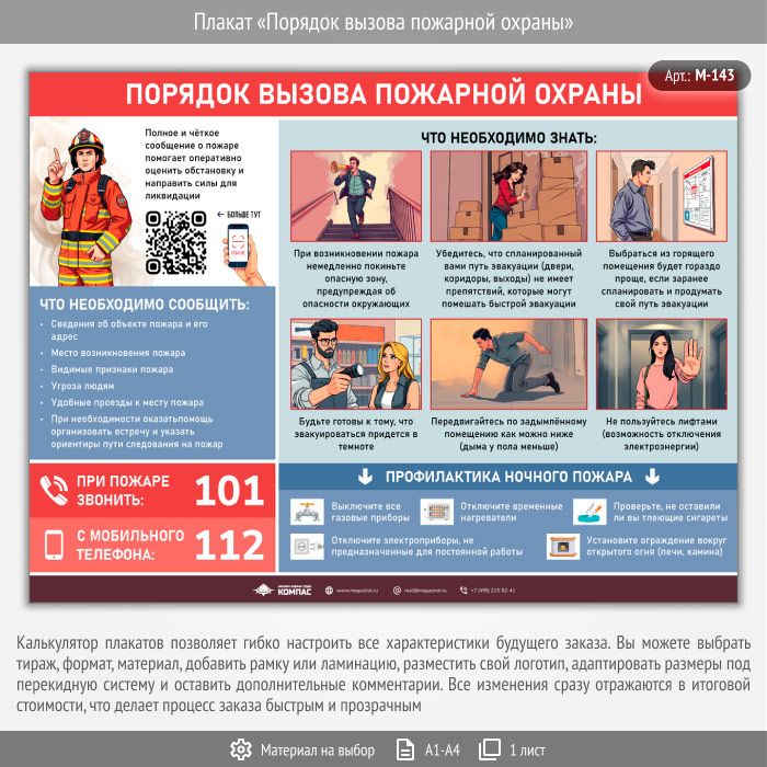 Плакат «Порядок вызова пожарной охраны» с QR (М-143, 1 лист) в Великом Новгороде купить