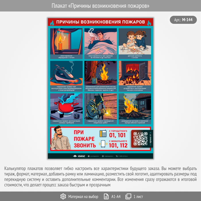 Плакат «Причины возникновения пожаров» с QR (М-144, 1 лист) в Великом Новгороде купить