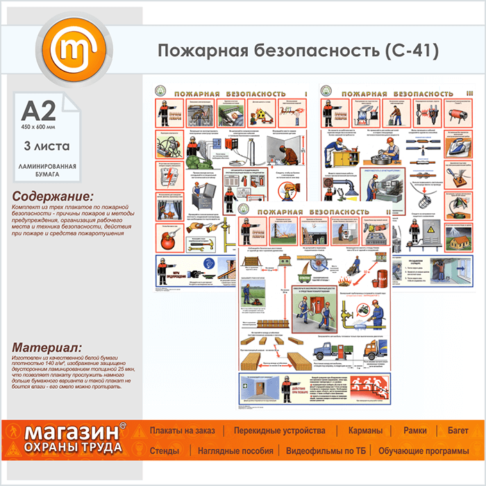 Плакаты «Пожарная безопасность» (С-41, ламинированная бумага, А2, 3 листа) в Великом Новгороде купить