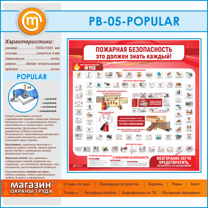 Стенд «Пожарная безопасность. Это должен знать каждый» (PB-05-POPULAR) в Великом Новгороде купить