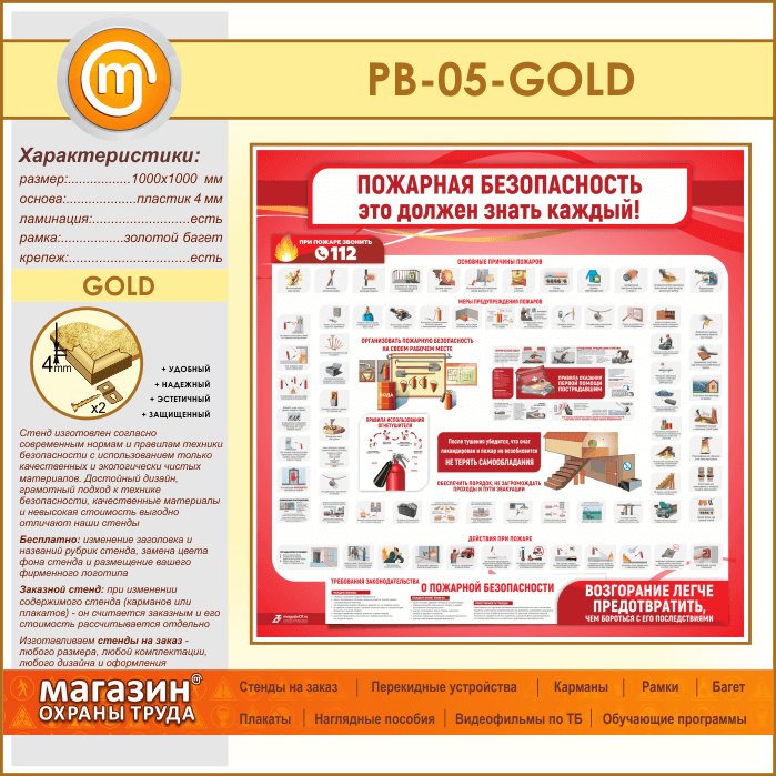 Стенд «Пожарная безопасность. Это должен знать каждый» (PB-05-GOLD) в Великом Новгороде купить