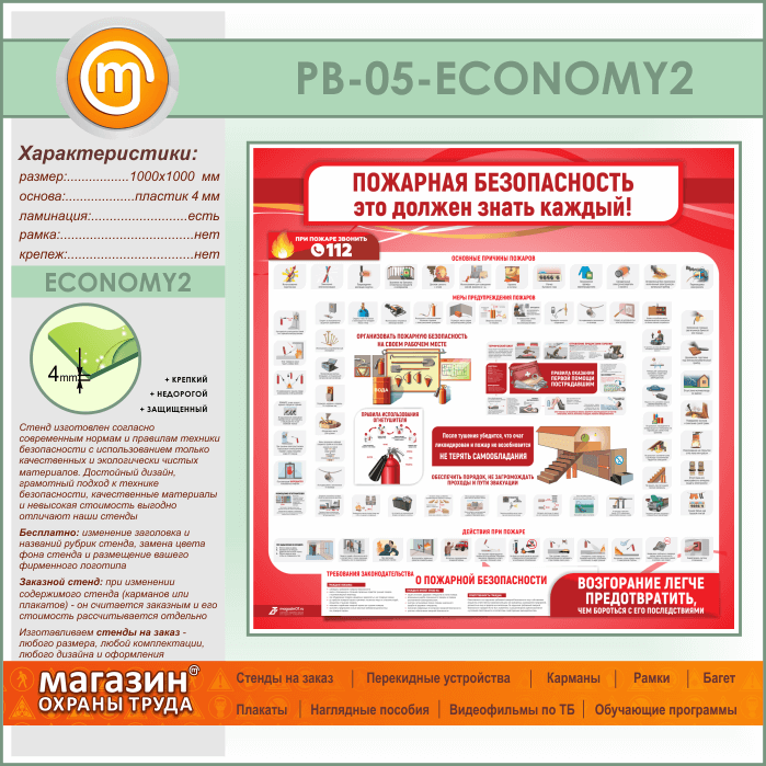 Стенд «Пожарная безопасность. Это должен знать каждый» (PB-05-ECONOMY2) в Великом Новгороде купить