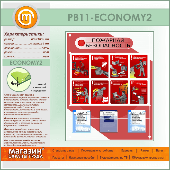 Стенд «Стенд пожарная безопасность в строительстве» с 3 объемными карманами (PB-11-ECONOMY2) в Великом Новгороде купить