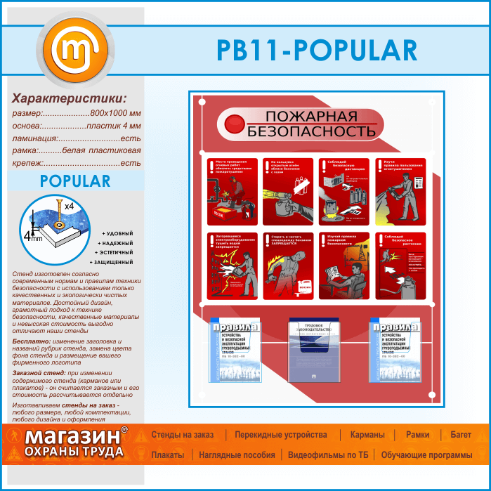 Стенд «Стенд пожарная безопасность в строительстве» с 3 объемными карманами (PB-11-POPULAR) в Великом Новгороде купить