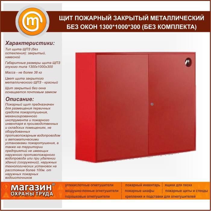 Щит пожарный закрытый металлический без окон 1300*1000*300 (без комплекта) в Великом Новгороде купить