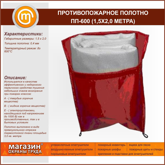 Противопожарное полотно ПП-600 (1, 5х2, 0 метра) в Великом Новгороде купить