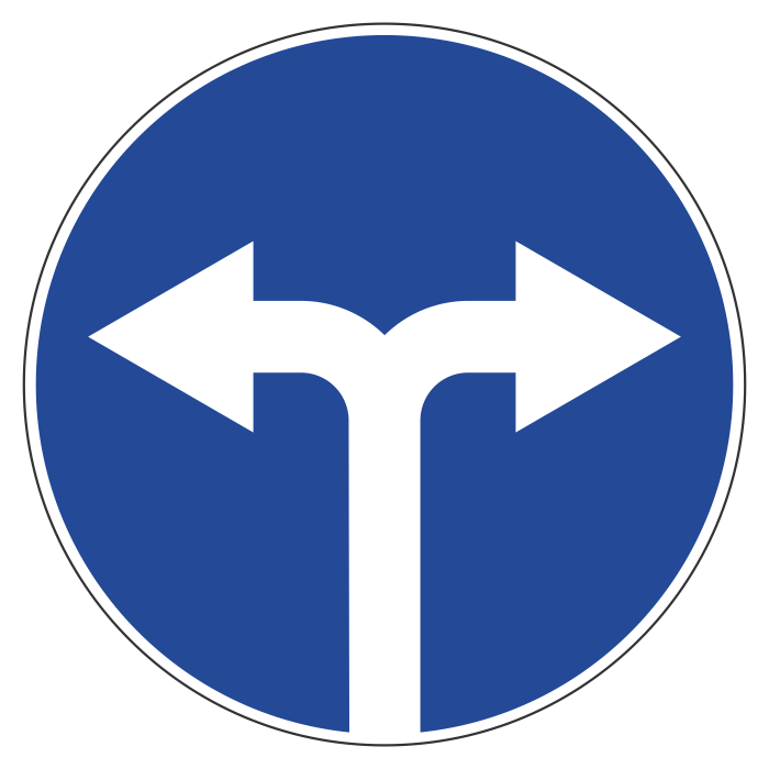 Дорожный знак 4.1.6 «Движение направо или налево» (металл 0,8 мм, I типоразмер: диаметр 600 мм, С/О пленка: тип А коммерческая) в Великом Новгороде купить