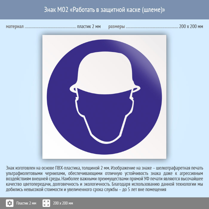 Знак M02 «Работать в защитной каске (шлеме)» (пластик, 200х200 мм) в Великом Новгороде купить