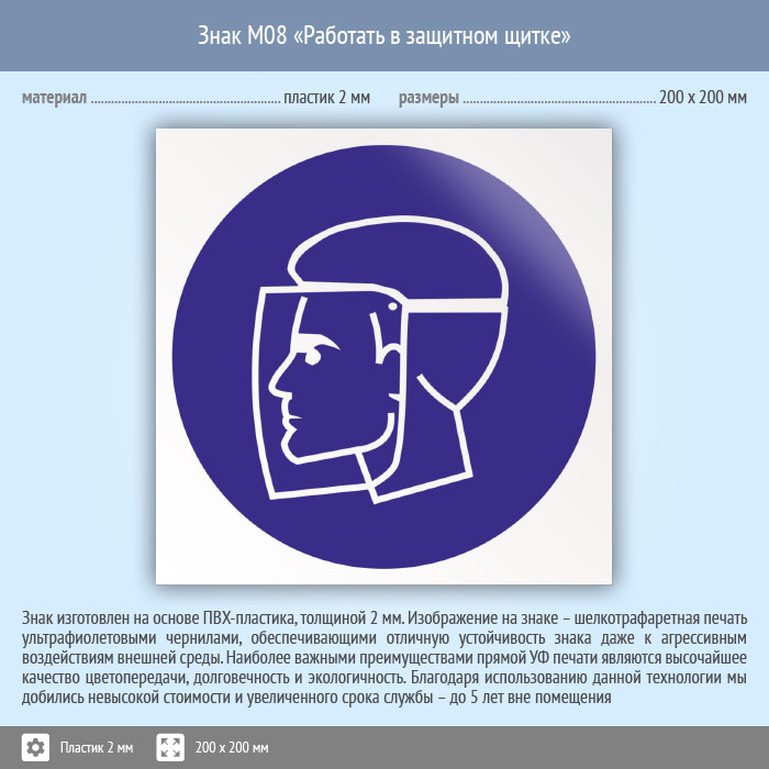 Знак M08 «Работать в защитном щитке» (пластик, 200х200 мм) в Великом Новгороде купить
