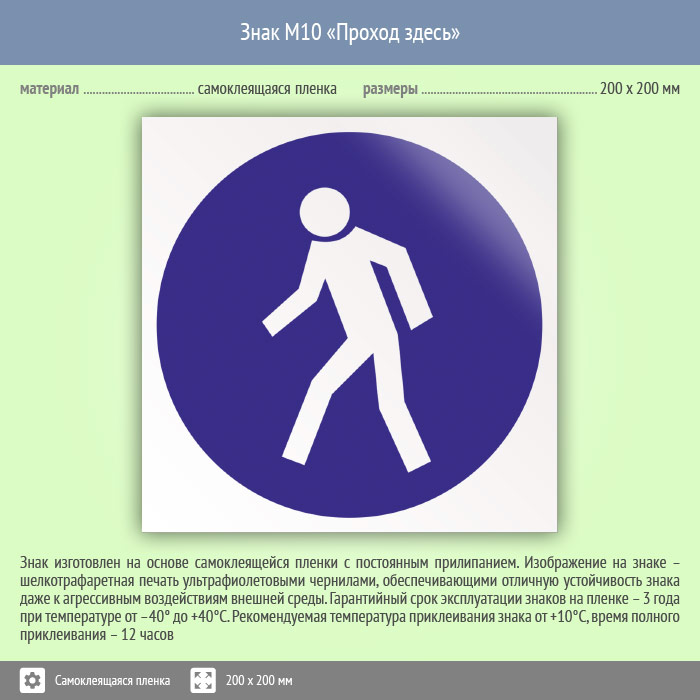 Знак M10 «Проход здесь» (пленка, 200х200 мм) в Великом Новгороде купить