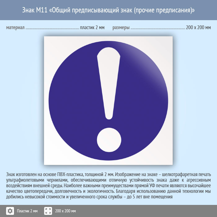 Знак M11 «Общий предписывающий знак (прочие предписания)» (пластик, 200х200 мм) в Великом Новгороде купить