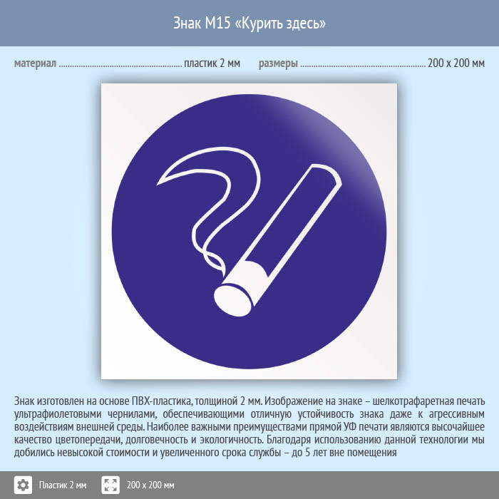 Знак M15 «Курить здесь» (исключен) (пластик, 200х200 мм) в Великом Новгороде купить