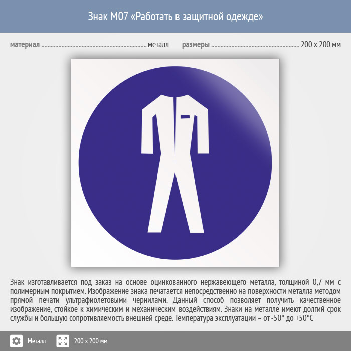 Знак M07 «Работать в защитной одежде» (металл, 200х200 мм) в Великом Новгороде купить