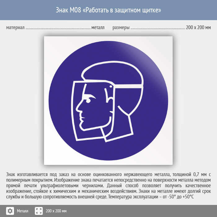 Знак M08 «Работать в защитном щитке» (металл, 200х200 мм) в Великом Новгороде купить