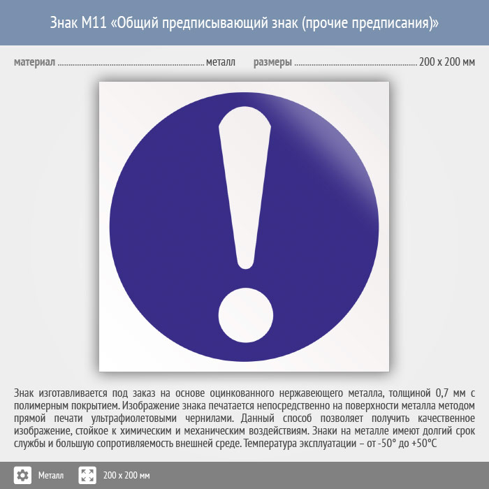 Знак M11 «Общий предписывающий знак (прочие предписания)» (металл, 200х200 мм) в Великом Новгороде купить