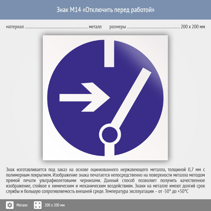 Знак M14 «Отключить перед работой» (металл, 200х200 мм) в Великом Новгороде купить