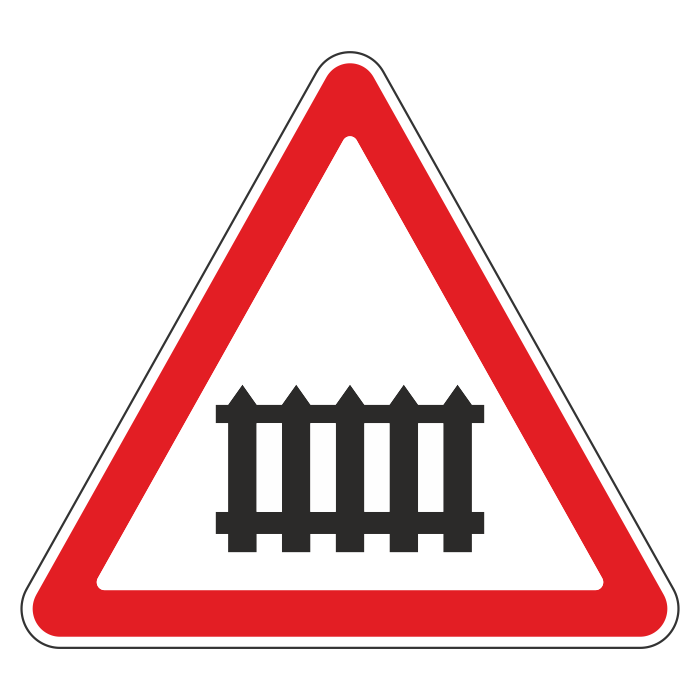 Дорожный знак 1.1 «Железнодорожный переезд со шлагбаумом» (металл 0,8 мм, I типоразмер: сторона 700 мм, С/О пленка: тип Б высокоинтенсивная) в Великом Новгороде купить