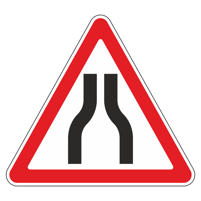 Дорожный знак 1.20.1 «Сужение дороги» (металл 0,8 мм, III типоразмер: сторона 1200 мм, С/О пленка: тип А коммерческая) в Великом Новгороде купить