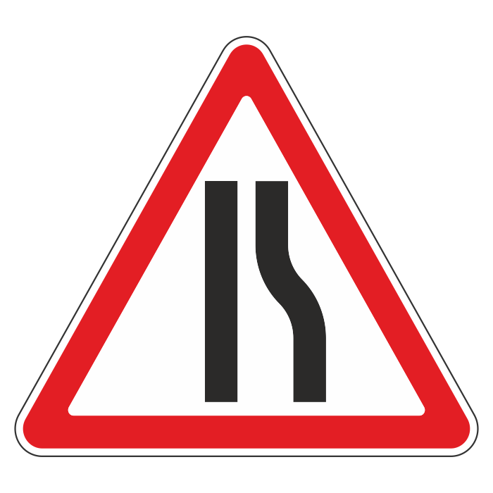 Дорожный знак 1.20.2 «Сужение дороги» (металл 0,8 мм, IV типоразмер: сторона 1500 мм, С/О пленка: тип В алмазная) в Великом Новгороде купить