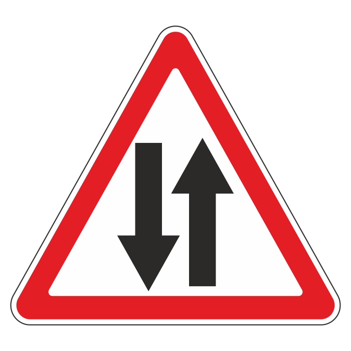 Дорожный знак 1.21 «Двустороннее движение» (металл 0,8 мм, IV типоразмер: сторона 1500 мм, С/О пленка: тип А инженерная) в Великом Новгороде купить