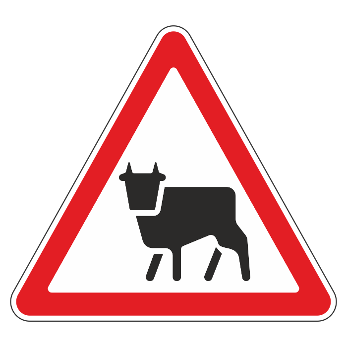 Дорожный знак 1.26 «Перегон скота» (металл 0,8 мм, III типоразмер: сторона 1200 мм, С/О пленка: тип Б высокоинтенсивная) в Великом Новгороде купить