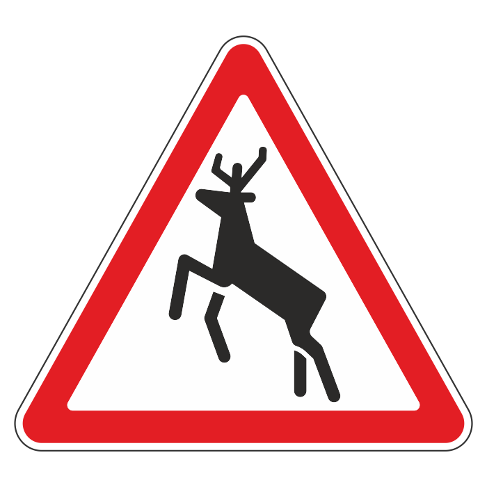 Дорожный знак 1.27 «Дикие животные» (металл 0,8 мм, III типоразмер: сторона 1200 мм, С/О пленка: тип А инженерная) в Великом Новгороде купить