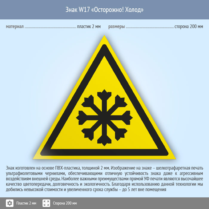 Знак W17 «Осторожно! холод» (пластик, сторона 200 мм) в Великом Новгороде купить