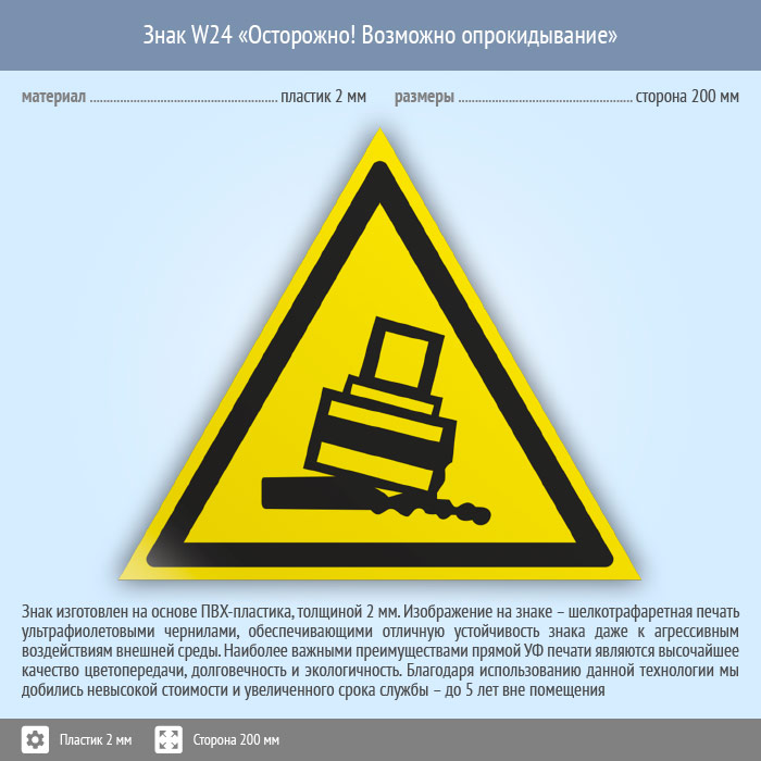 Знак W24 «Осторожно! возможно опрокидывание» (пластик, сторона 200 мм) в Великом Новгороде купить