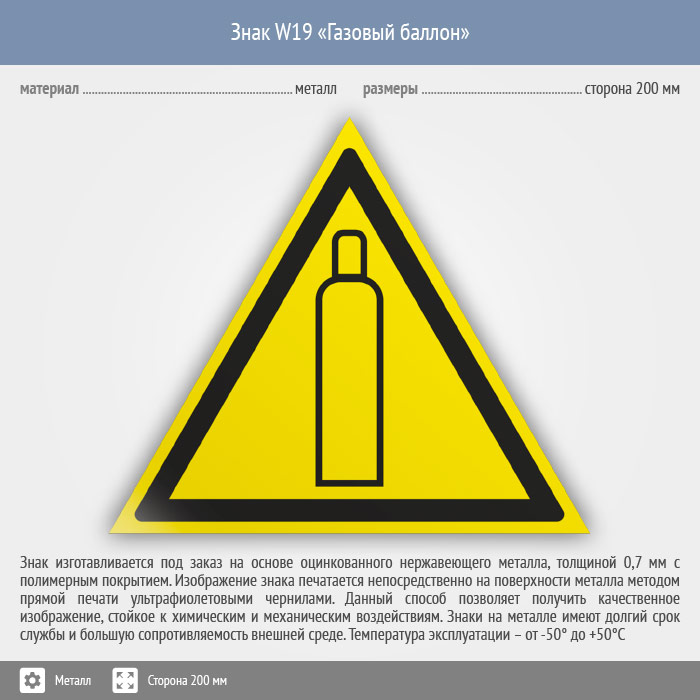 Знак W19 «Газовый баллон» (металл, сторона 200 мм) в Великом Новгороде купить