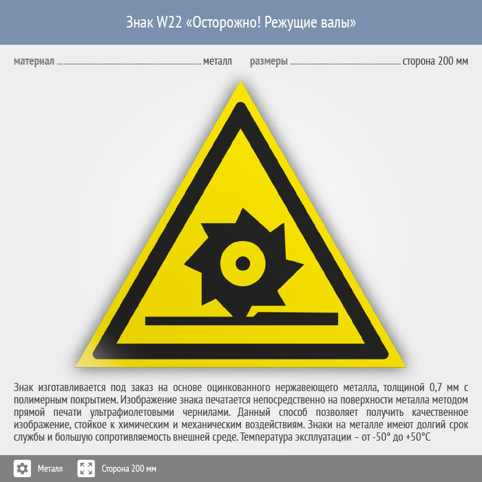 Знак W22 «Осторожно! режущие валы» (металл, сторона 200 мм) в Великом Новгороде купить