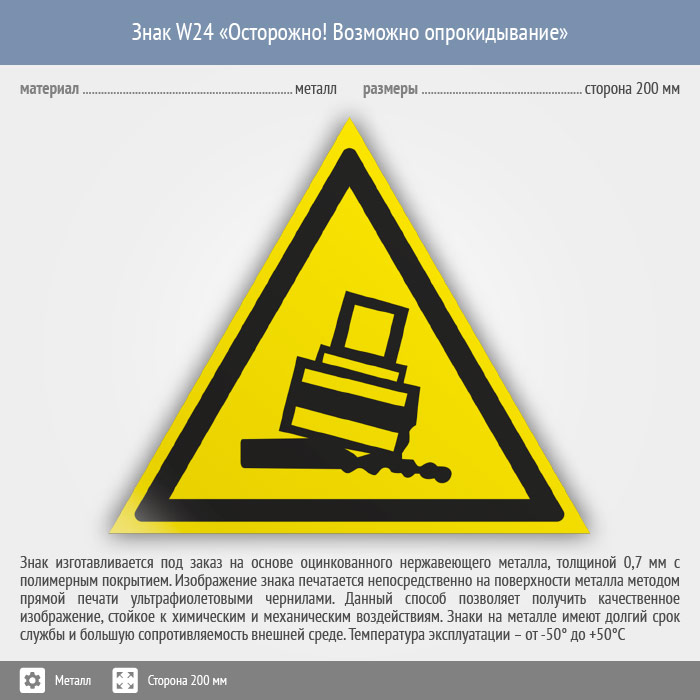 Знак W24 «Осторожно! возможно опрокидывание» (металл, сторона 200 мм) в Великом Новгороде купить
