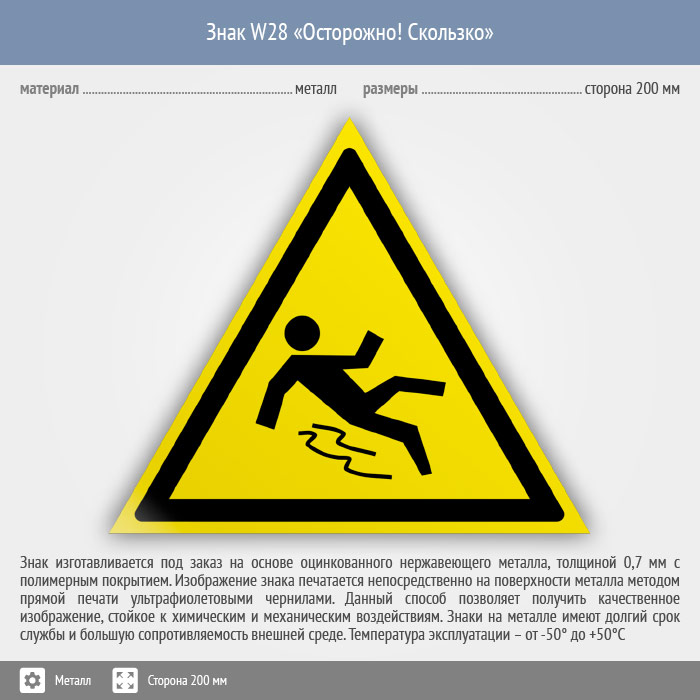 Знак W28 «Осторожно! скользко» (металл, сторона 200 мм) в Великом Новгороде купить