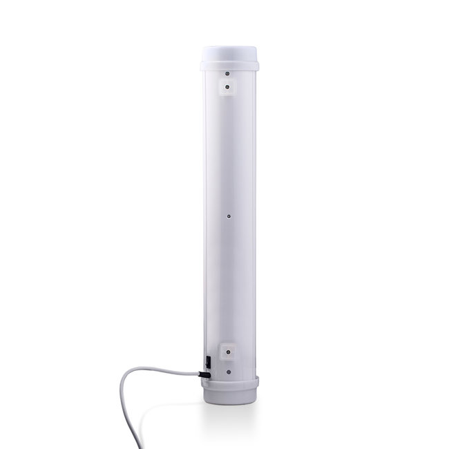 Рециркулятор представляет собой корпус, в который вентиляторами затягивается воздух из помещения. Воздух проходит обработку ультрафиолетом, который исходит от лампы. Этот свет разрушает болезнетворные микроорганизмы на молекулярном уровне. Через верхнее отверстие очищенный воздух выходит обратно. Непрозрачный корпус и вентиляционные отверстия с сильным чернением не пропускают излучение. Окружающие люди и животные с лучами не контактируют, поэтому рециркулятор абсолютно безопасен! А для того, чтобы удобно расположить рециркулятор к нему можно отдельно приобрести стойки и подставки