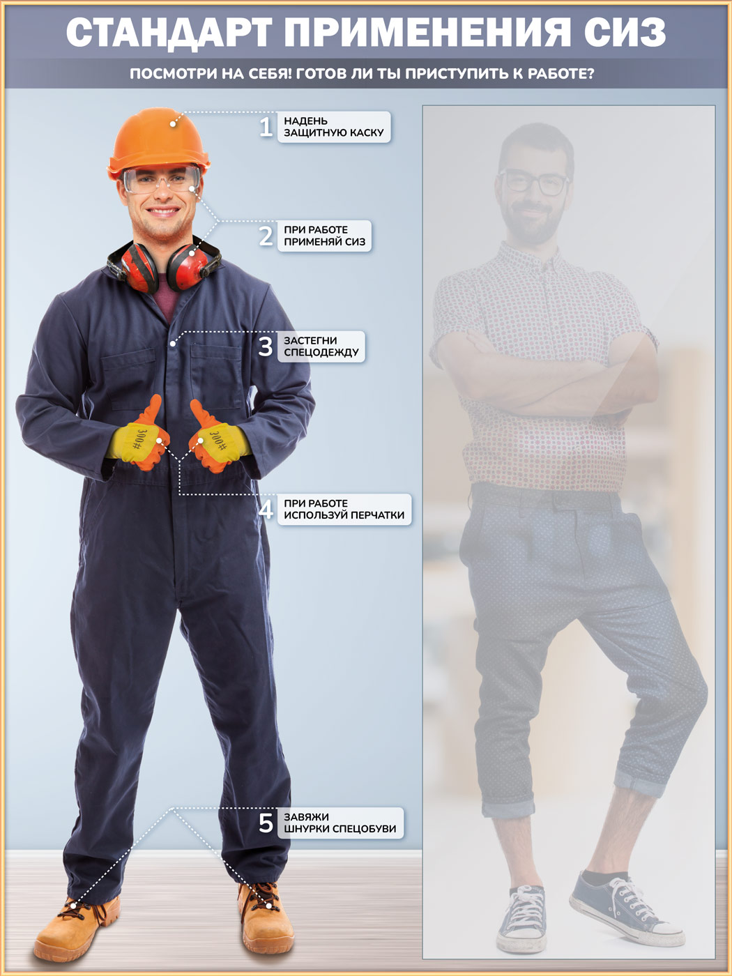 Стенд для демонстрации применения СИЗ с зеркалом, 1500х2000 мм в золотом багете (СПС-01-З) в Великом Новгороде купить
