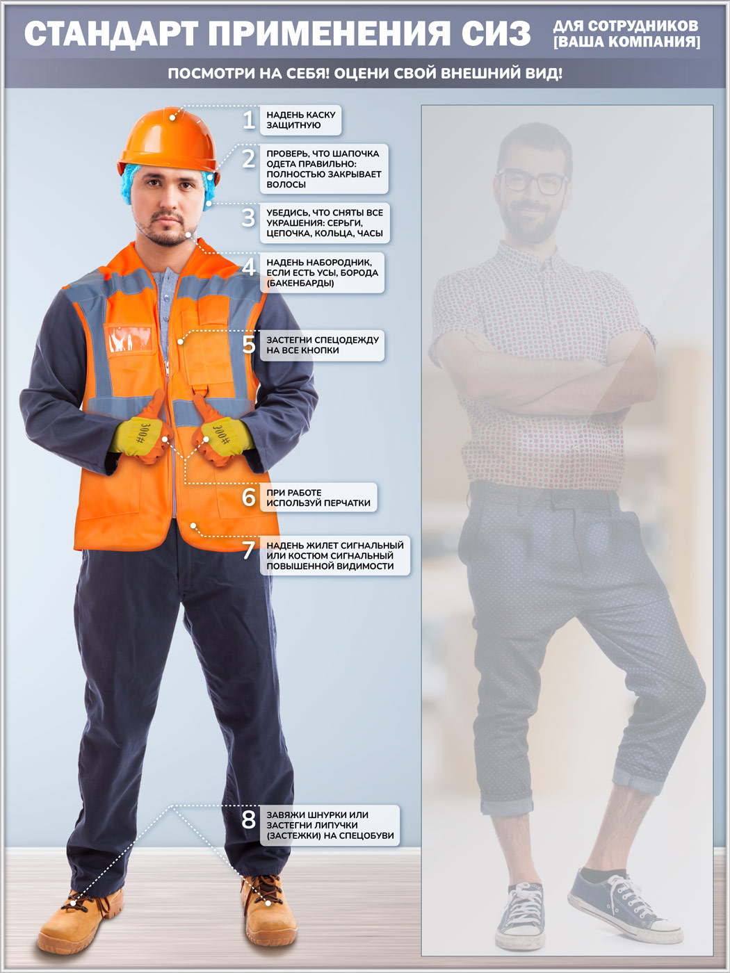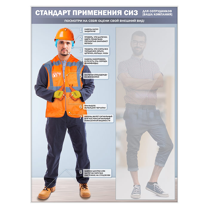 Стенд для демонстрации применения СИЗ с зеркалом, 1500х2000 мм в серебряном багете (СПС-03-С) в Великом Новгороде купить