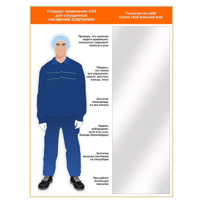 Стенд для демонстрации применения СИЗ с зеркалом, 1500х2000 мм в золотом багете (СПС-03.2-З) в Великом Новгороде купить