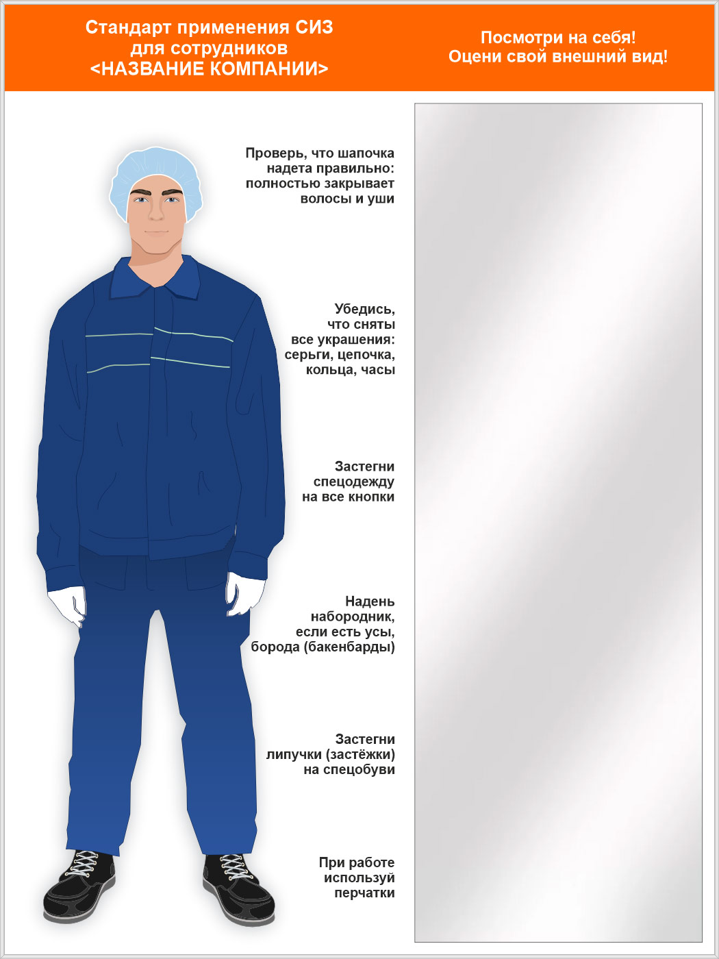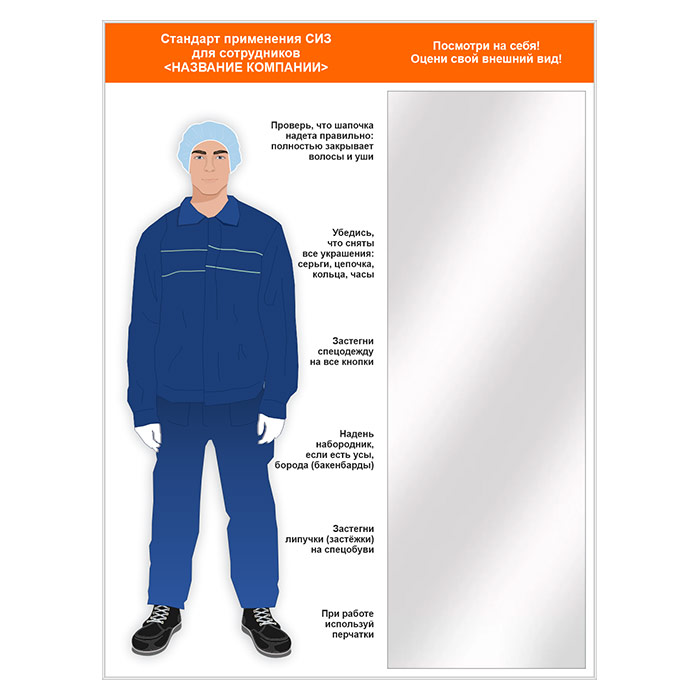 Стенд для демонстрации применения СИЗ с зеркалом, 1500х2000 мм в серебряном багете (СПС-03.2-С) в Великом Новгороде купить