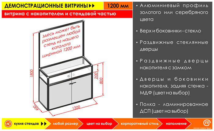 Витрина с накопителем и стендовой частью, 1200 мм в Великом Новгороде купить