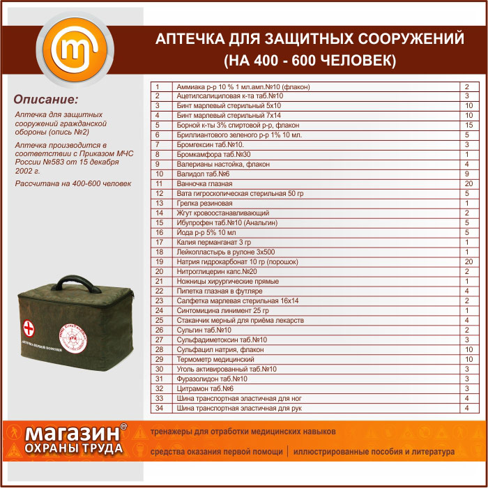 Аптечка для Защитных Сооружений (на 400 - 600 человек) - сумка в Великом Новгороде купить
